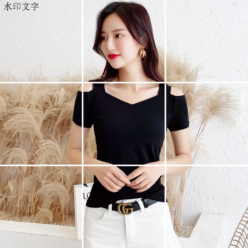 Jalan Lengan Pendek Seksi Dari Baju Bahu Untuk Wanita Di Atas Bahu V Leher Sling Gaya Baru Bersitil Slim Slim Musim Semi Dan Musim Panas Baju Bawah Shopee Malaysia